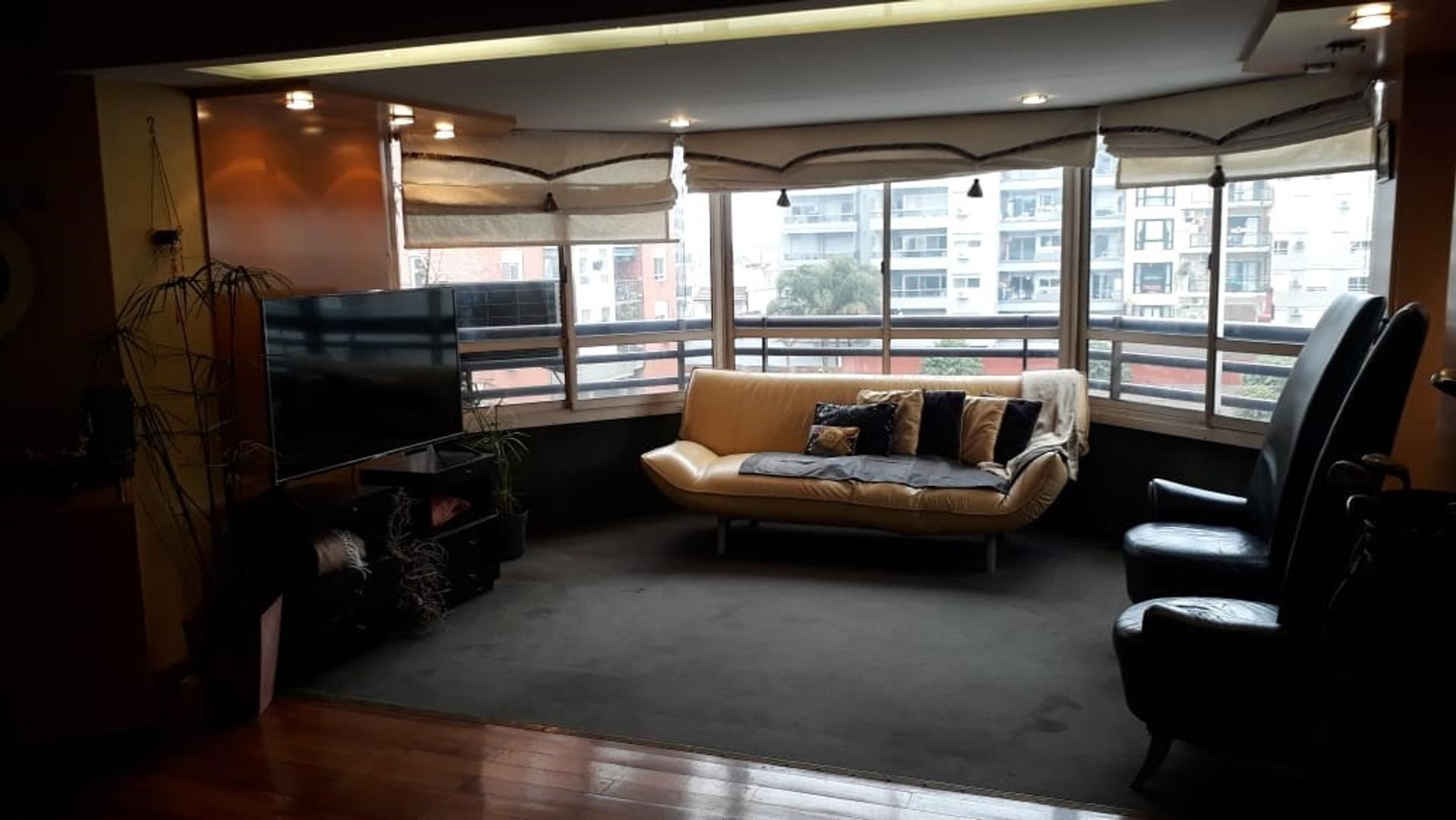 Importante semipiso en Olazábal al 5500 Semipiso al contra frente con espectacular vista abierta, donde se observan los jardines de toda la manzana. Ubicado entre Ceretti y Burela y Mendoza. Edificio de 12 pisos con cochera cubierta y fija. Cuenta con tres dormitorios, uno en suitte, dos baños completos, palier privado. El departamento tiene tres accesos, dos a la cocina y uno al iving comedor, puertas Blindadas Pentágono . Hermosa y cómoda cocina de 4, 20m por 2,40m de ancho, doble mesada, doble Bacha con muchos muebles de madera bajo mesada y alacenas, Comedor diario, Living comedor de 11 × 6 m en una parte y de 11 × 3m en la otra. Se cerró balcón hexagonal y se agregó al Living permitiendo mucha luz y vista completamente abierta. Cristalero embutido en la parte del comedor con estantes de blindex y luz. Dormitorio principal de 4 × 4 con dos ventanales al pulmón de manzana, con vestidor placares de toda la pared y baño en suite con luz natural. Pasillo a los otros dos dormitorios, segundo dormitorio de 3 × 3,50m con placar y baulera, alfombras de muy buena calidad y todo sol, tercer dormitorio también con placar muy luminoso. Baño completo con ventanas al exterior. El semipiso está situado a cinco cuadras de Av. Triunvirato y una y media de Av. Constituyentes. Solo a seis cuadras del subte línea B Manuel de Rosas y a tres cuadras del centro gastronómico del Boulevard Mendoza
